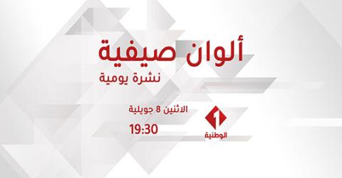 تبث القناة الوطنية الأولى بداية من اليوم الإثنين 8 جويلية على الساعة السابعة والنصف مساء نشرة يومية بعنوان ألوان صيفية تعنى بالمهرجانات الصيفية وبالتظاهرات الثقافية. الإعداد للصحفية زهرة فضلي والإخراج لملاك بودربالة